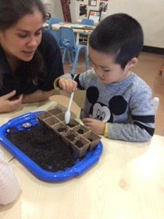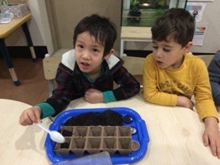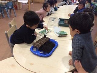 The pre-kindy room enjoyed getting outside and planting vegetable seeds into pots and our vegetable garden.