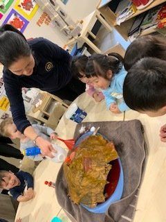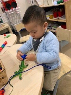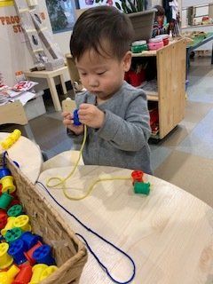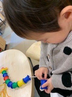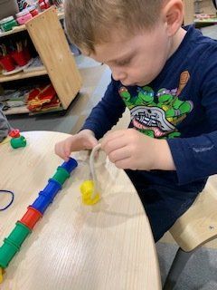 During this week in the Echidna's room they focused on fine motor skills through a range of experiences such as threading cotton reeds, making neck laces with threading beans and pastas.